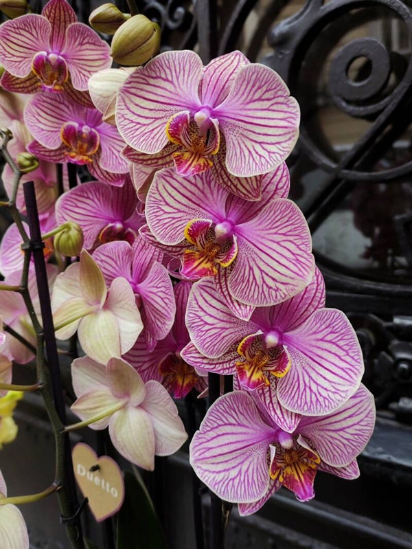 Weiß mit violetten Adern ist 55cm hoch, 25 cm breit.